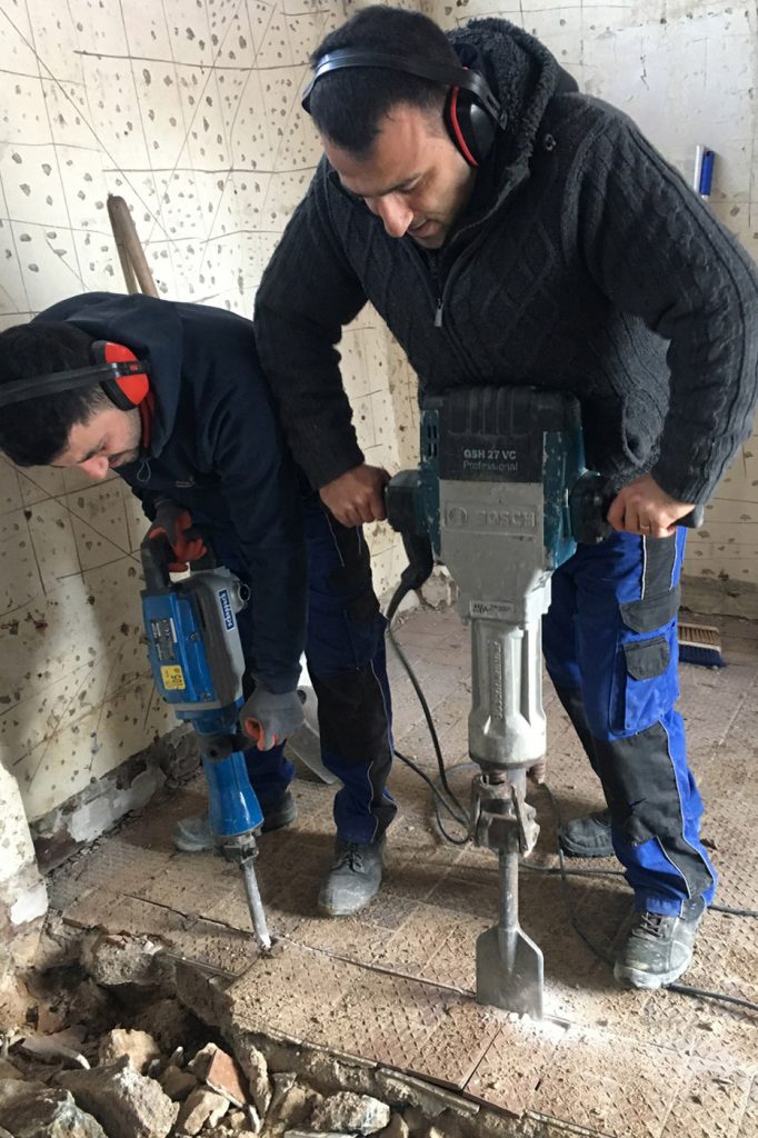 Für Stemmarbeiten haben wir eine breite Palette an Werkzeugen und Maschinen zur Verfügung, damit wir einerseits zu entfernende Substanzen schnell bearbeiten können, andererseits die erhaltenswerte Umgebung nicht in Mitleidenschaft gezogen wird.